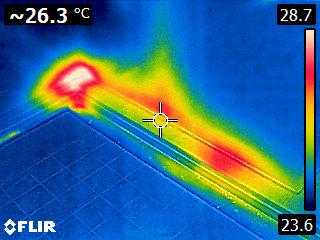 Here you see infrared tech in action. The most reliable way to identify the origin points for structural shifts is using infrared technology like this. It helps us to know where to secure the joints in the shower with premium flowing epoxy injection.